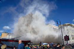 Firefighters faced a complex task as the structure continued to give way as they tried to get near the trapped worker through a first-floor window, forcing their retreat on telescopic aerial ladders in a cloud of smoke. Another approach on two ladders was also aborted, and a drone sent up in their stead.
