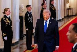 Those remodeling efforts include paving over the lawn near the Rose Garden to install a patio reminiscent of his Mar-a-Lago club in Florida and affixing partisan plaques to portraits of all the presidents on a Walk of Fame along the Colonnade. He's also adorned the Oval Office in copious amounts of gold decorations and demolished the East Wing to begin work on a massive ballroom.