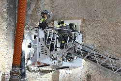Hundreds of tourists had gathered to watch as firefighters used a mobile ladder to bring a stretcher to the upper level of the Torre dei Conti during the first rescue attempt. Suddenly, another part of the structure crumbled, sending up a cloud of debris and forcing firefighters to quickly descend.