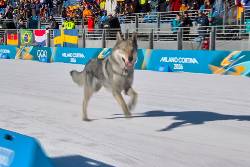 TESERO, Italy (AP) — A surprise participant in Wednesday’s action at the Milan Cortina Olympics had four legs and zero concern for race times.