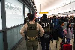 On Monday morning, Associated Press journalists saw Immigration and Customs Enforcement officers patrolling terminals and standing watch beside long lines of passengers at Hartsfield–Jackson Atlanta International Airport, John F. Kennedy International Airport in New York, Newark Liberty International Airport in New Jersey, George Bush Intercontinental Airport in Houston and Louis Armstrong International Airport outside New Orleans.