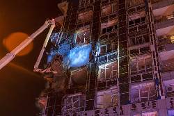 Video footage posted to Telegram showed a large fire spread through multiple floors of the nine-story building in Dniprovskyi. At least four people were injured, the head of Kyiv city administration, Tymor Tkachenko, said.