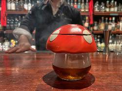At the Alice bar, which takes its inspiration from Lewis Carroll’s “Alice in Wonderland,” the signature cocktail is “Foggy Fongo,” a riff on the book’s famous depiction of a caterpillar smoking a pipe on top of a mushroom. Served in a smoky, mushroom-shaped glass, the cocktail is built on bourbon, frankincense and palo santo (a Peruvian wood), with macadamia and hazelnut, as well as artichoke, sherry and the prized pine mushroom.