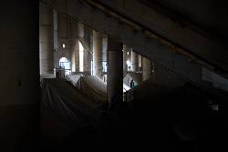 The March 15 photo from Planet Labs PBC shows damage to one of the massive air base’s buildings.