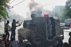 I also saw two small Haitian flags placed atop a gang barricade on one street, with twisted metal and an old oven and fridge forming part of the barricade.