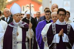 In his homily, Leo offered a meditation on sin and said the ashes that Christians receive bear the "weight of a world that is ablaze, of entire cities destroyed by war.”