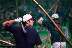 When batting practice ended, he jogged out to thank the batting practice pitcher, bowed slightly, and gathered a few loose balls and tossed them into the hopper. Then with a bat in each hand, he trotted off the field to prepare for the game against Taiwan.