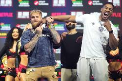In their photo standoff that closed Wednesday’s event, the 6-foot-6 Joshua towered over the 6-1 Paul. Joshua also has a six-inch reach advantage, 82-76. In addition, 12 of Paul’s bouts have been at the 200-pound cruiserweight limit.