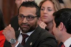 Videos shared on social media showed a pumped-up Patel drinking beer from a bottle and spraying the rest around the locker room. After one of the players draped his gold medal around Patel's neck, he joined the players as they jumped up and down.