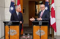 Canada's Mark Carney and his Australian counterpart Anthony Albanese discussed the war during their meeting in Australia’s capital, Canberra.