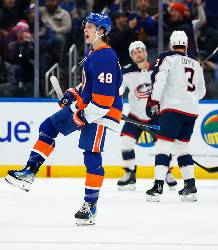 “That was a big shift. That’s what happens when you put pucks on net," Schaefer said of his tying goal as Islanders captain Anders Lee screened Merzlikins. “A big grind out of the guys.”