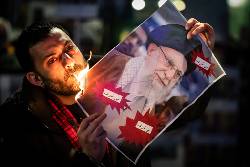 A video that has gone viral in recent days shows the woman — who described herself as an Iranian refugee — snapping open a lighter and setting the flame to a photo she holds. It ignites, illuminating the visage of Ayatollah Ali Khamenei, Iran's highest cleric. Then the woman dips a cigarette into the glow, takes a quick drag — and lets what remains of the image fall to the pavement.