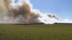 An Associated Press reporter visited Fine Oak Farms on Thursday, a day after the fire. A little bit of smoke could still be seen rising from the burned down area. A darkened structure was partially collapsed, and charred debris was piled beside several darkened metal silos where flames had ripped through. But the impact appeared concentrated in one area of the farm complex, with other nearby buildings left largely intact.