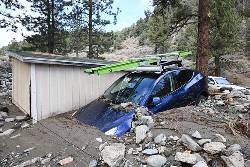 Roads in the 5,000-resident town of Wrightwood were covered in rocks, debris and thick mud on Thursday. With power out, a gas station and coffee shop running on generators were serving as hubs for residents and visitors.