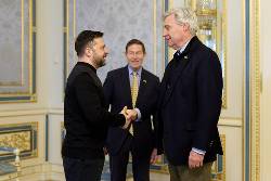 The visit and the push for Congress to take up sanctions on Russia come at a crucial moment in the conflict. Delegations for the two sides were also meeting in Switzerland for two days of U.S.-brokered talks, but neither side appeared ready to budge on key issues like territory and future security guarantees. The sanctions, senators hoped, could prod Putin toward settling for peace, as the U.S. has set a June deadline for settlement.