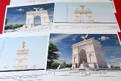 WASHINGTON (AP) — President Donald Trump’s design for the Triumphal Arch he wants built at an entrance to the nation's capital moved a step forward Thursday after a key agency reviewed the proposal for the first time. One commissioner suggested changes, including losing the Lady Liberty-like statue and pair of eagles that would sit on top of the arch and add to its height.