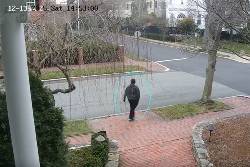 Some clips show the person walking in front of some properties several times. In one, the person abruptly turns around and runs in the other direction when someone approaches.
