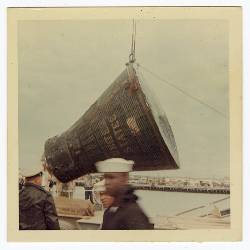 McQueeney's widow donated the photos, which show Armstrong and Scott on the deck of a U.S. Navy vessel and waving to service members on land. One shows the Gemini 8 capsule being lifted into the air for transport.