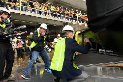 NASHVILLE, Tenn. (AP) — NFL Commissioner Roger Goodell knew the question was coming at the Tennessee Titans' ceremony Friday raising the final steel beam into place for their new enclosed stadium.