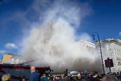 Firefighters faced a complex task as the structure continued to give way as they tried to get near the trapped worker through a first-floor window, forcing their retreat on telescopic aerial ladders in a cloud of smoke. Another approach on two ladders was also aborted, and a drone sent up in their stead.