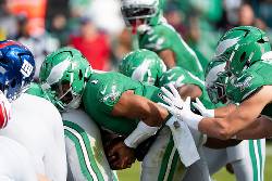 The Eagles have been ruthlessly efficient in converting short-yardage situations by having quarterback Jalen Hurts sneak while teammates line up behind him and push him forward.