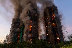 The raging fire sent up a column of flames and thick smoke as it spread on bamboo scaffolding and construction netting that had been set up around the exterior of the complex in the city’s Tai Po district. Records show the housing complex consisted of eight blocks housing almost 2,000 apartments.