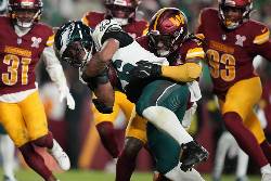 “Eagles vs. Commanders, man. That’s how it goes. ... There’s a lot of history, obviously. They were beating us. They’re not going to throw in the towel. They’re not going to take it easy on us. They were going for 2 to bury us. As a team, it’s not like you’re going to tell them, ‘Don’t go for 2.’ We have to stop them,” McLaurin said. “I don’t really take any bad blood from what they did, but you don’t want to see the game get out of hand and guys possibly getting hurt. It comes with this rivalry between us and them. I don’t think that will ever change, to be honest.”