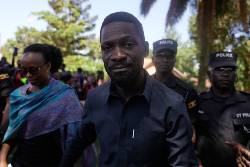 Wine, whose legal name is Kyagulanyi Ssentamu, was the most prominent of seven candidates who ran against Museveni in the Jan. 15 election. He went into hiding days after voting, saying he feared for his safety. He had campaigned in a flak jacket and helmet for the same reason.